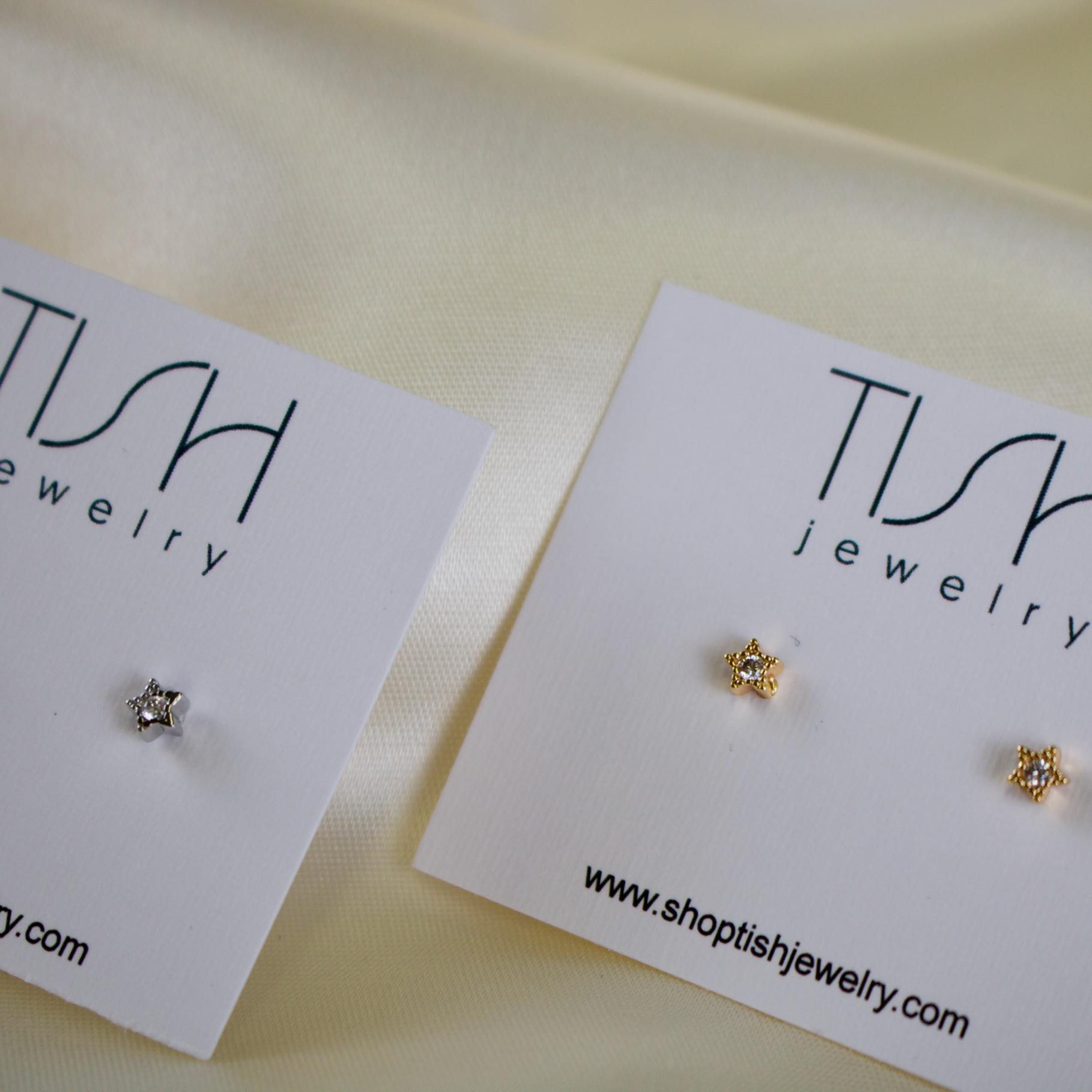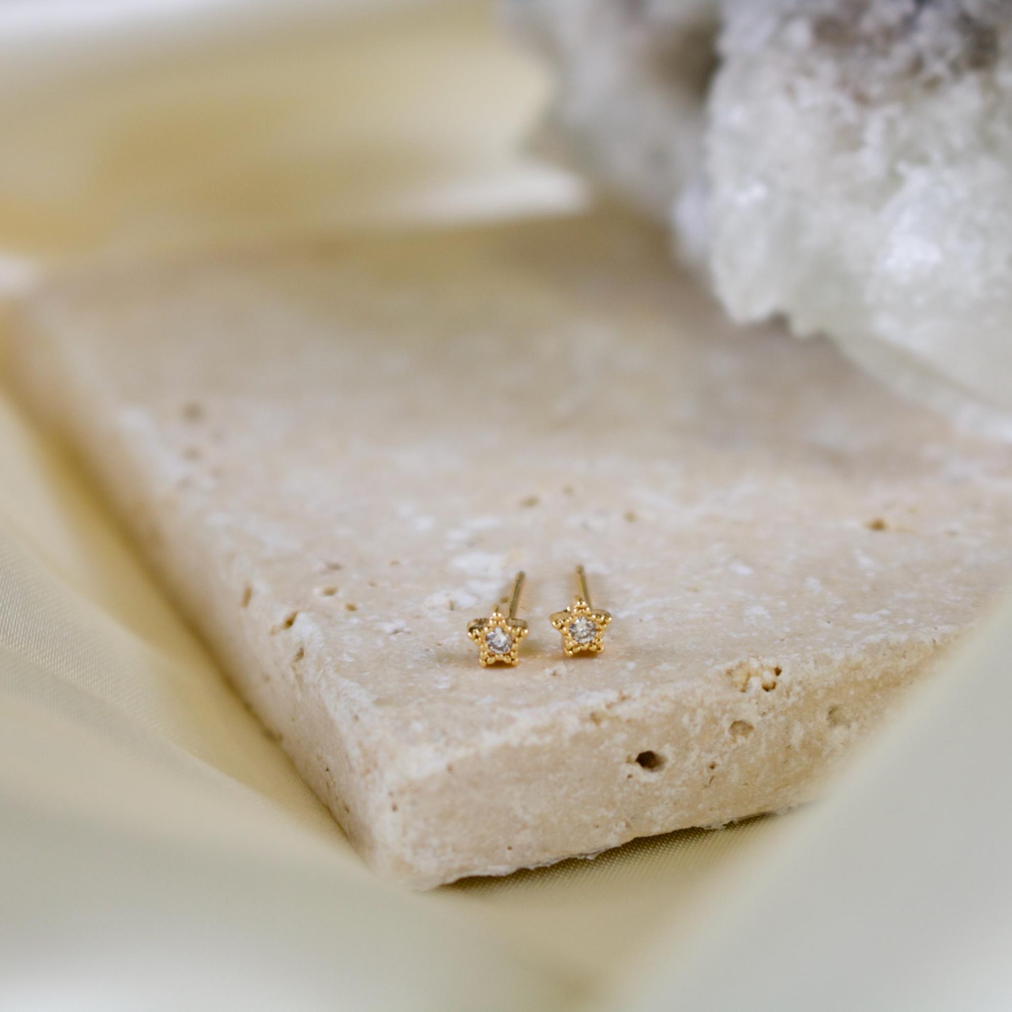 Product Features: • Option of gold or silver star stud • Gold or Silver plated brass post & backing - nickel free • Star is approximately 4mm in size (it's dainty)